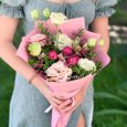 Корзина нежно-розовых роз и эустом