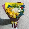 Желтые орхидеи и хризантемы в букете