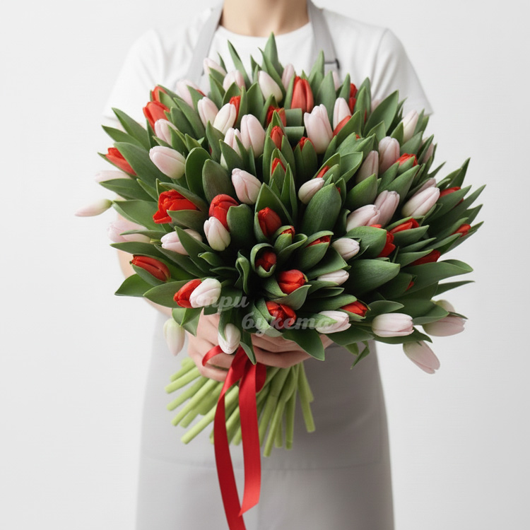 • Красные и белые тюльпаны, 101 шт.