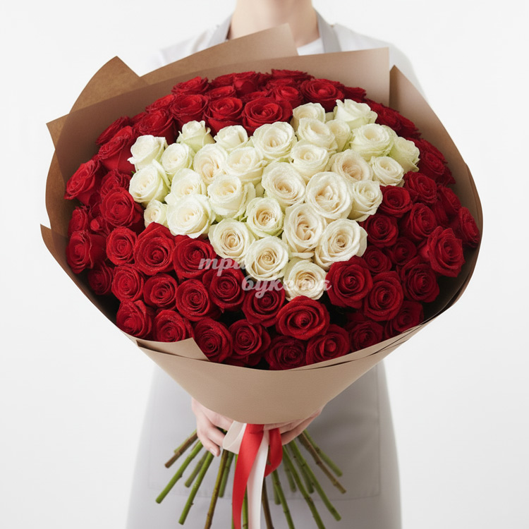 - Красные и белые розы, 101 шт.