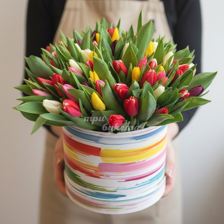 101 тюльпан в коробке