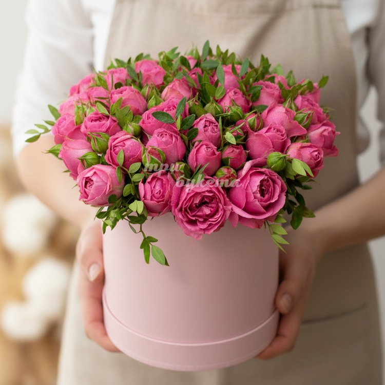 19 пионовидных роз в коробке