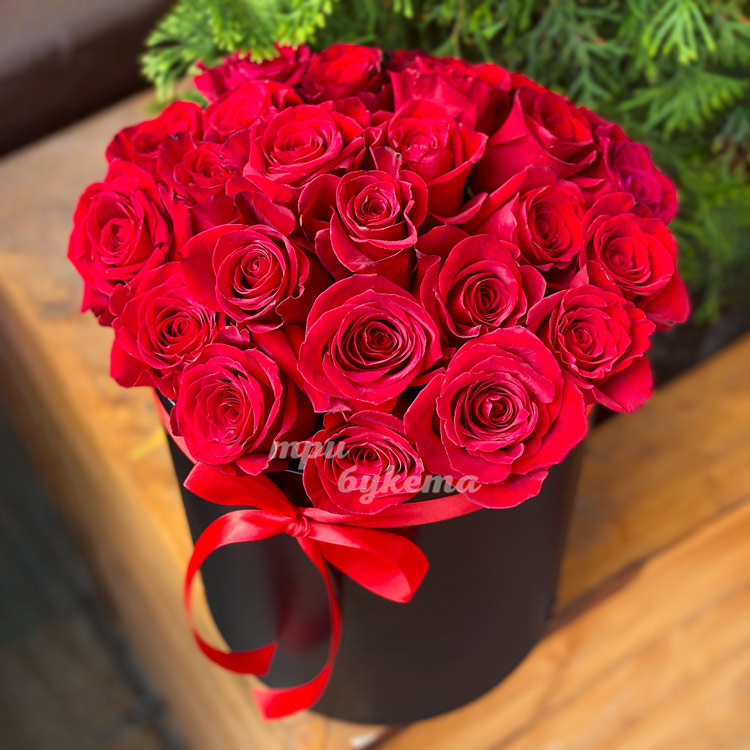 25 роз в черной коробке