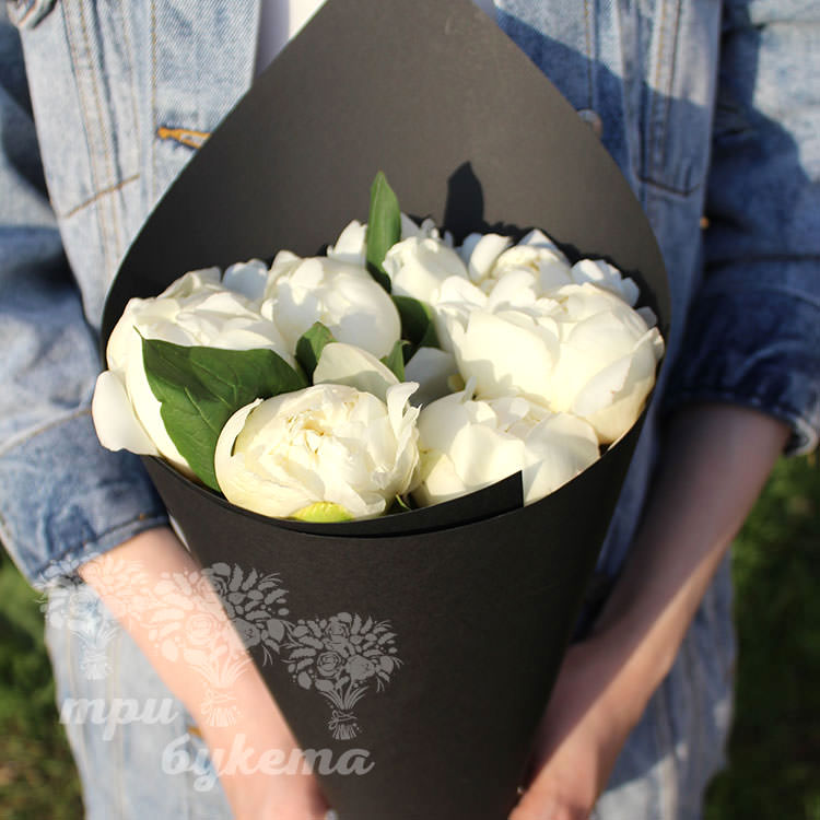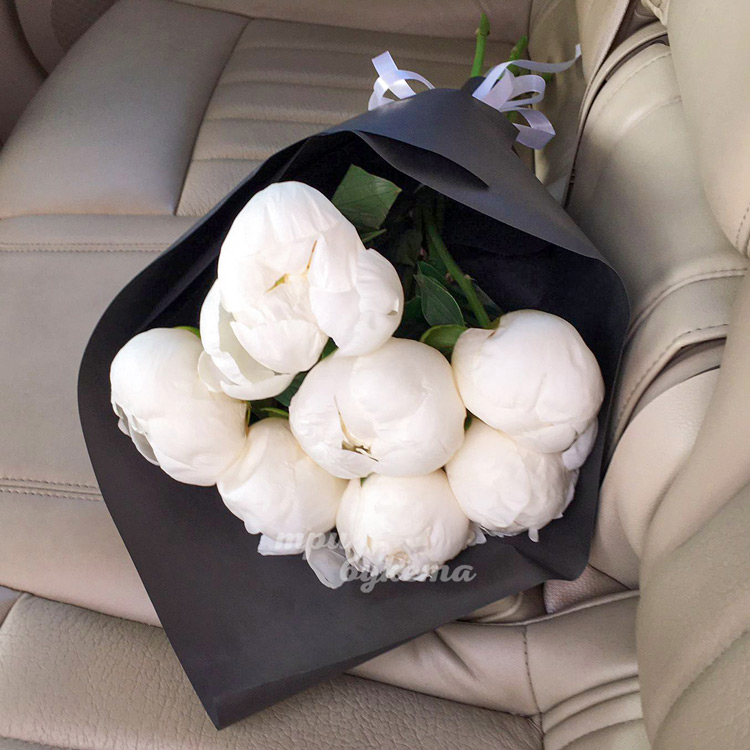 7 белых пионов Premium Блэк