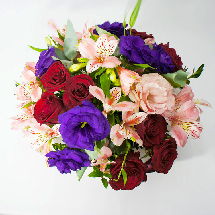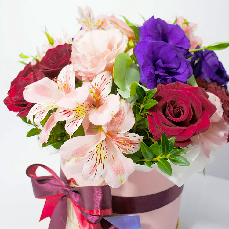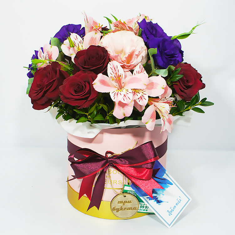 Альстромерии и розы в коробке