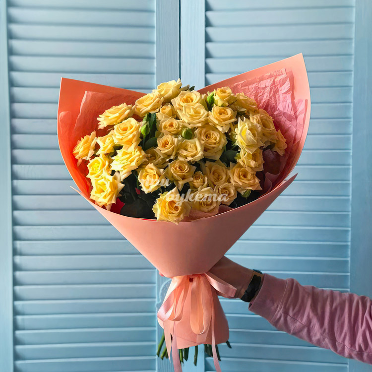 • Желтые кустовые розы, 11 шт.