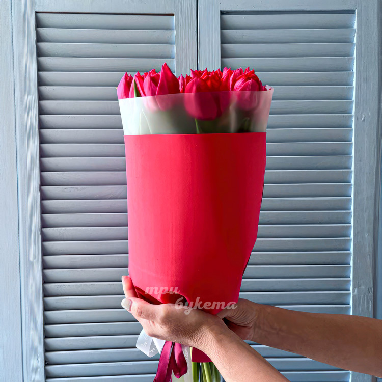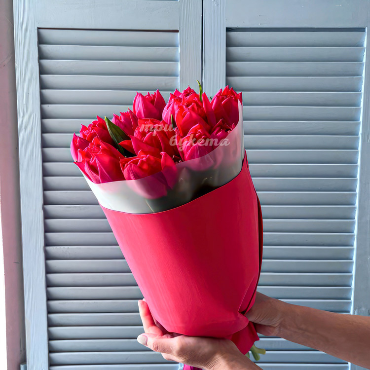 Букет 15 пионовидных тюльпанов цвета Фуксия