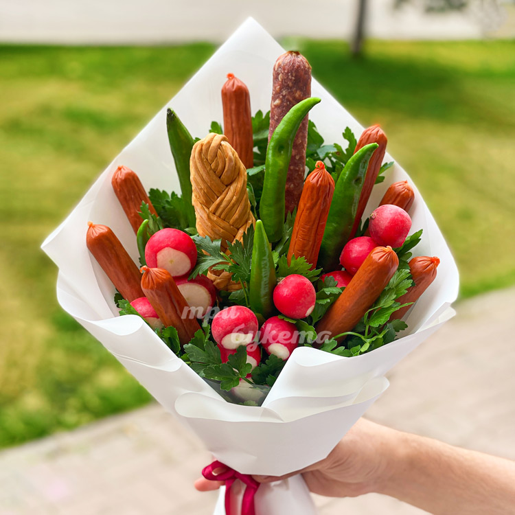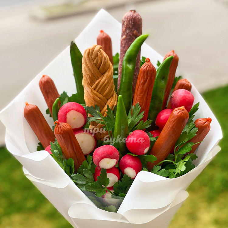 Букет для защитника из колбасок и редиса