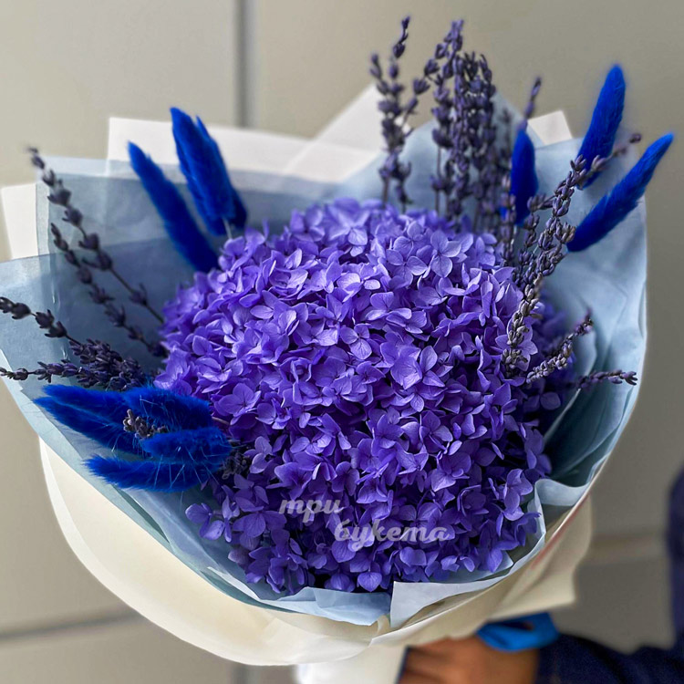 Букет гортензии с лавандой на 1 сентября