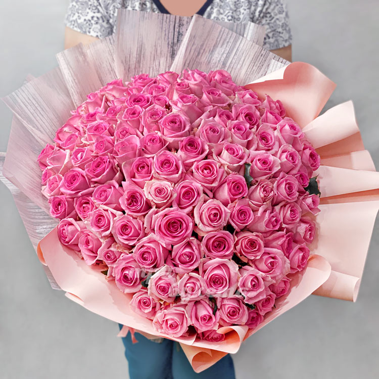 - Розовые розы, 101 шт.
