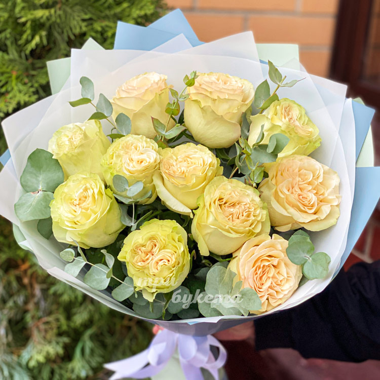 Букет из 11 белых пионовидных роз