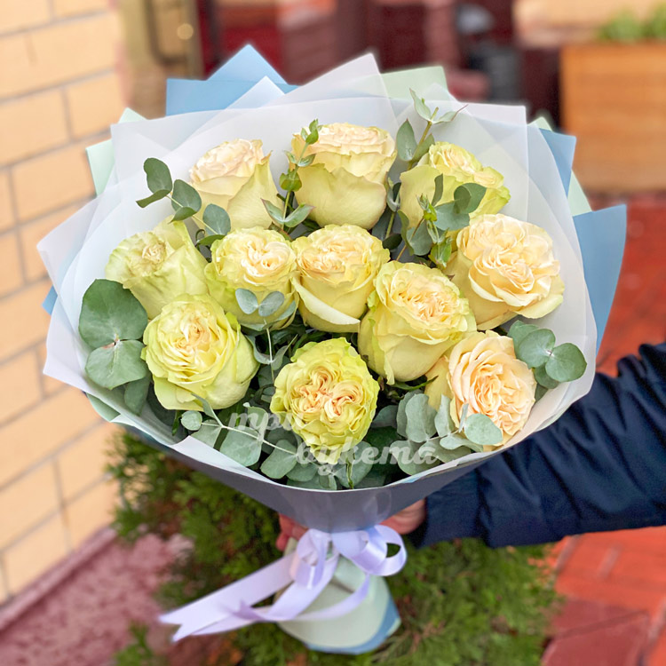 - Белые пионовидные розы, 11 шт.