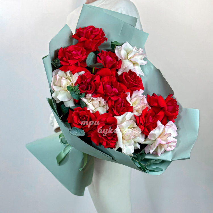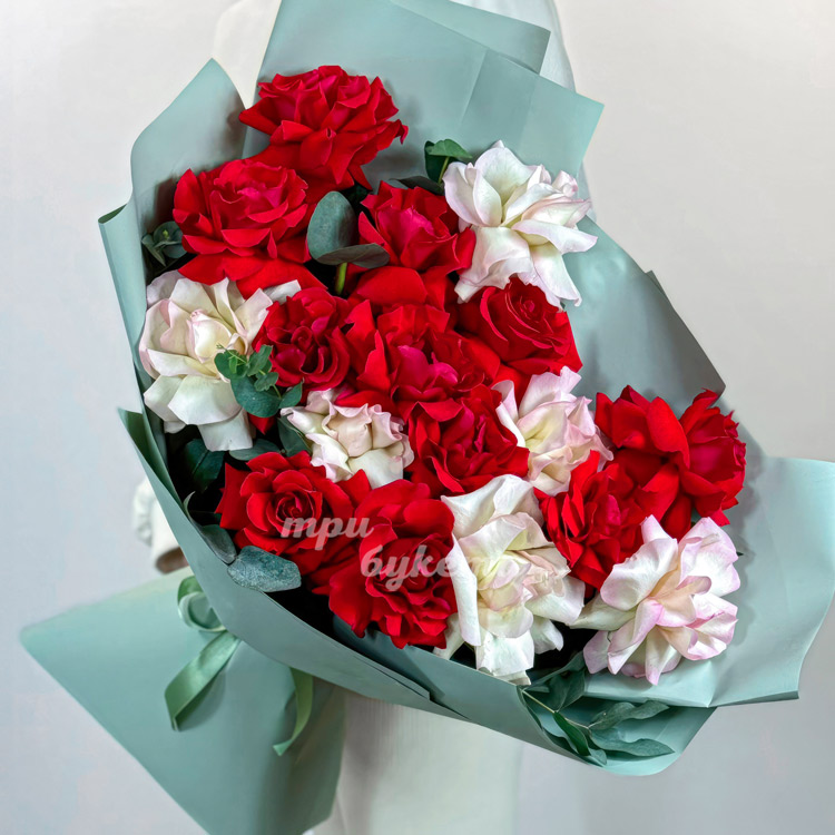 Букет из 17 красных и розовых французских роз