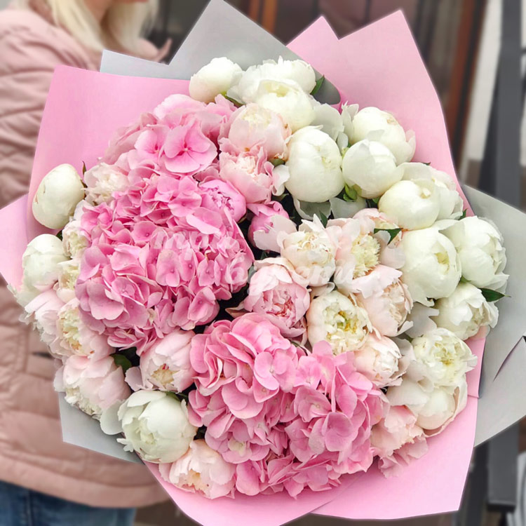 Букет из 36 пионов и 3 гортензий