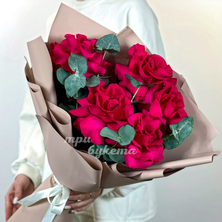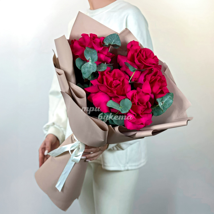 Букет из 5 розовых французских роз