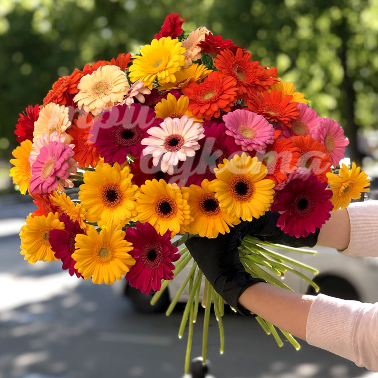 Букет из 51 цветной герберы