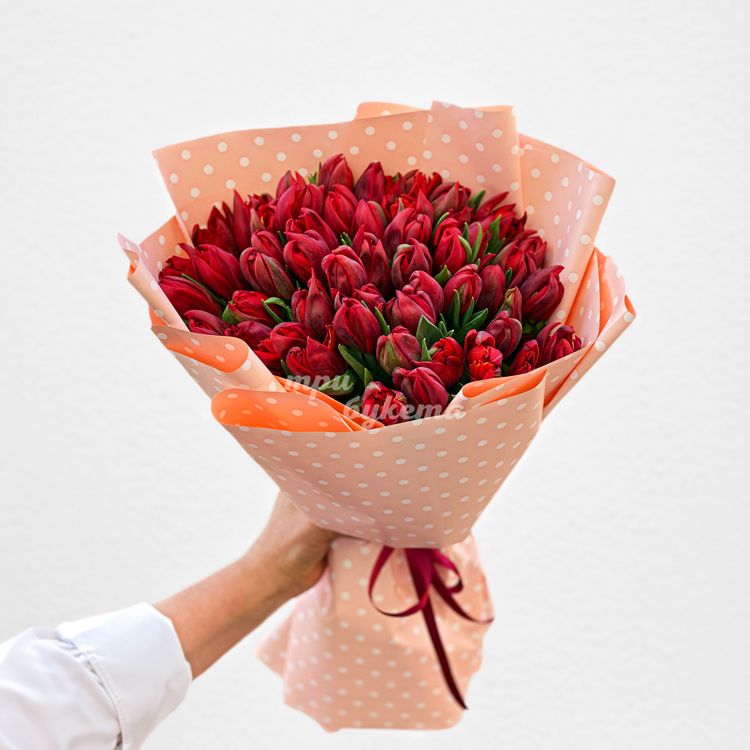 - Красные тюльпаны, 51 шт.