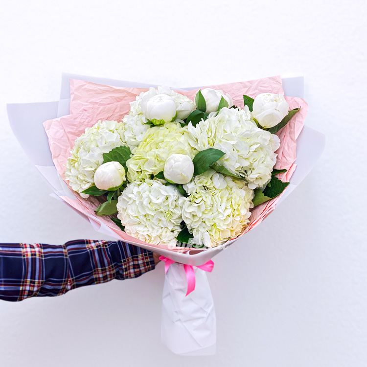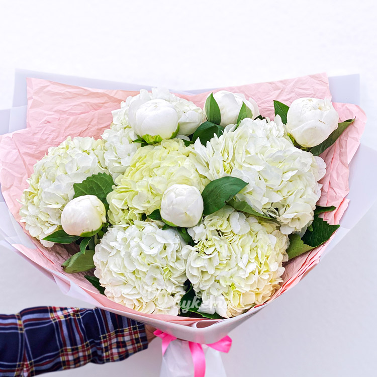 Букет из белых гортензий и пионов