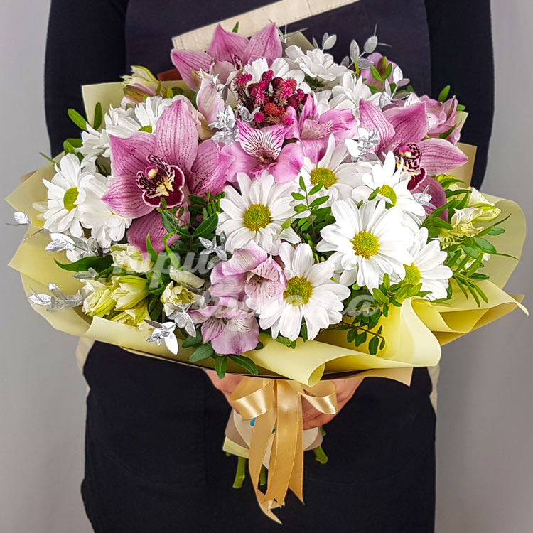 Букет из хризантем и орхидей