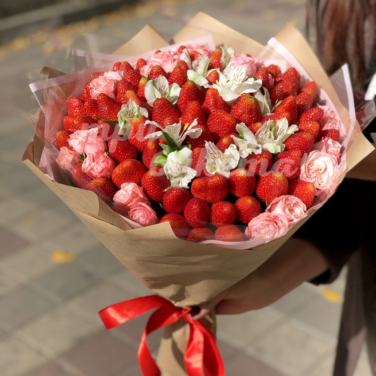 Букет из клубники и цветов