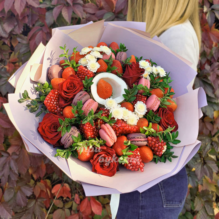 Букет из клубники, кокоса и роз