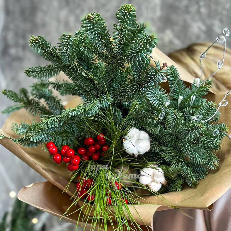 Букет из нобилиса с ягодами и хлопком
