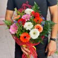 Букет из оранжевых гербер и орхидей