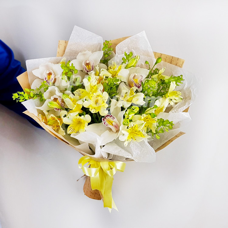 Букет из орхидей и альстромерий