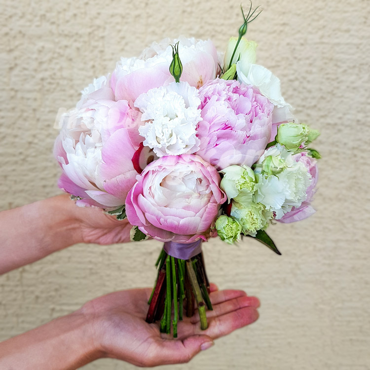 Букет невесты из пионов и эустом