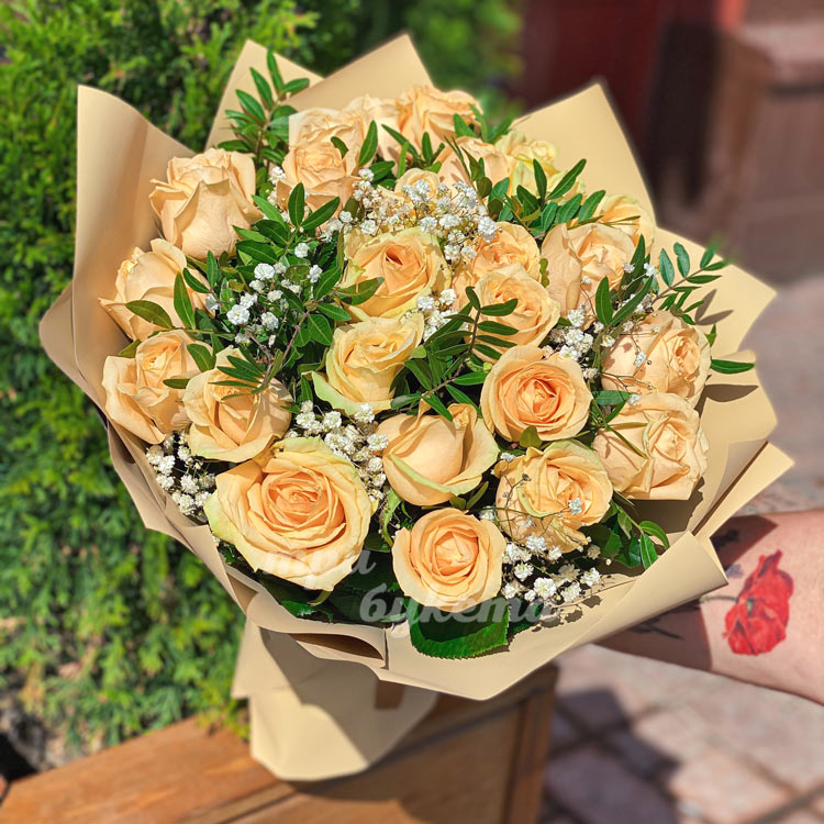 - Персиковые розы, 25 шт.