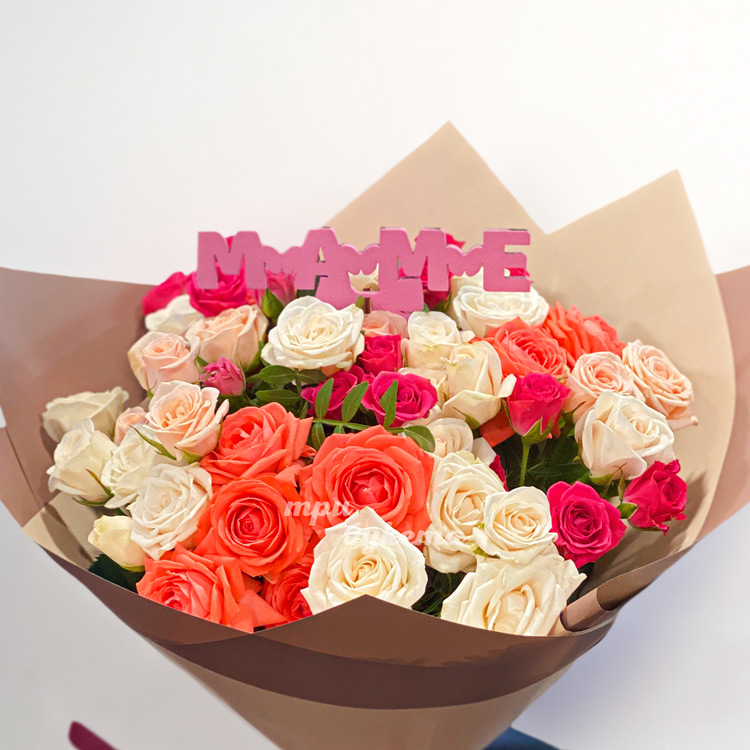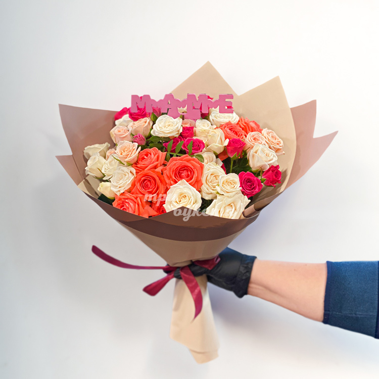Букет ярких кустовых роз на день матери