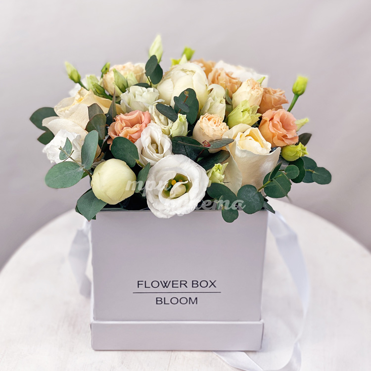 Эустомы и розы в коробке