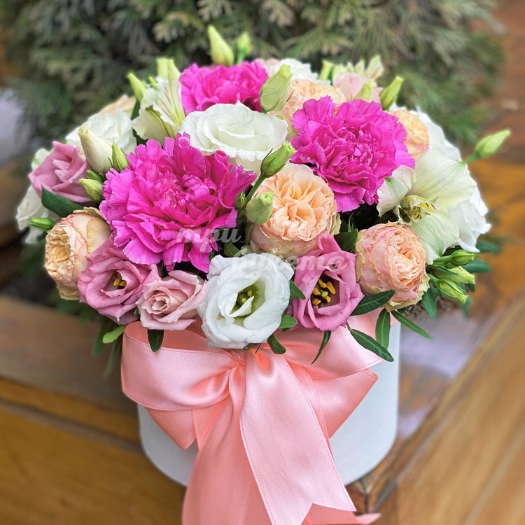 Гвоздики и розы в коробке