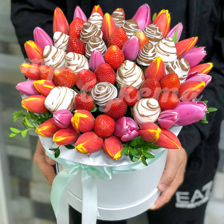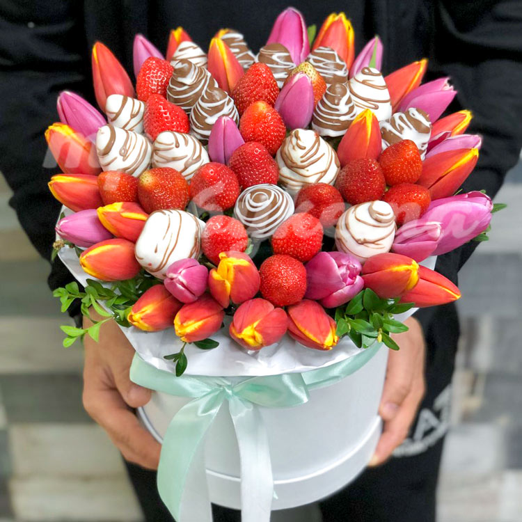 Клубника и тюльпаны в коробке