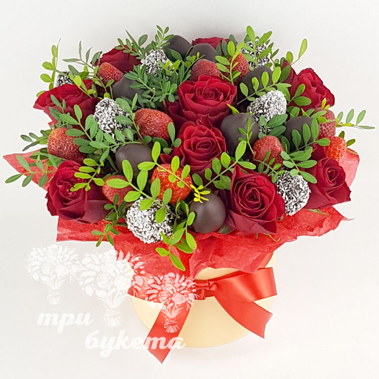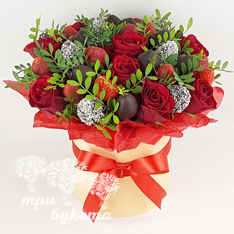 Клубника и цветы в шляпной коробке
