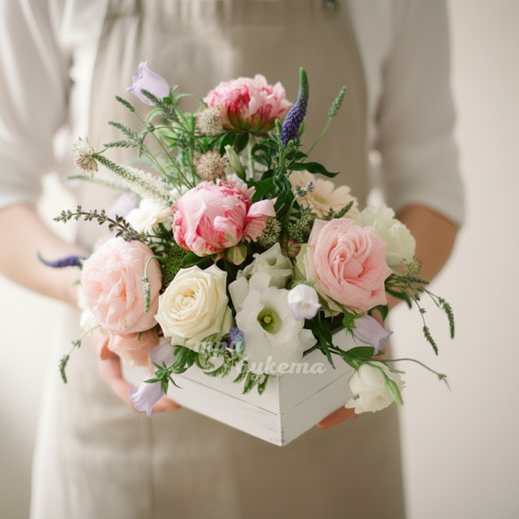 Композиция с розами и эустомой