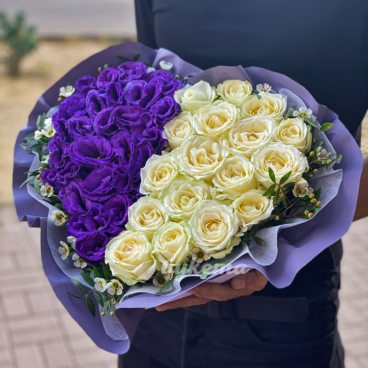Коробка-сердце с розами и эустомами