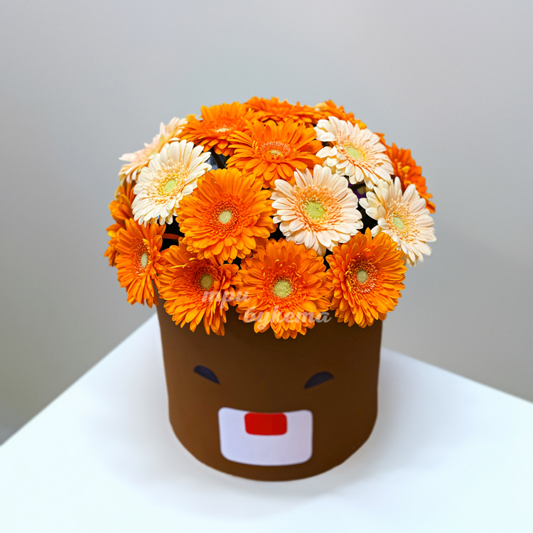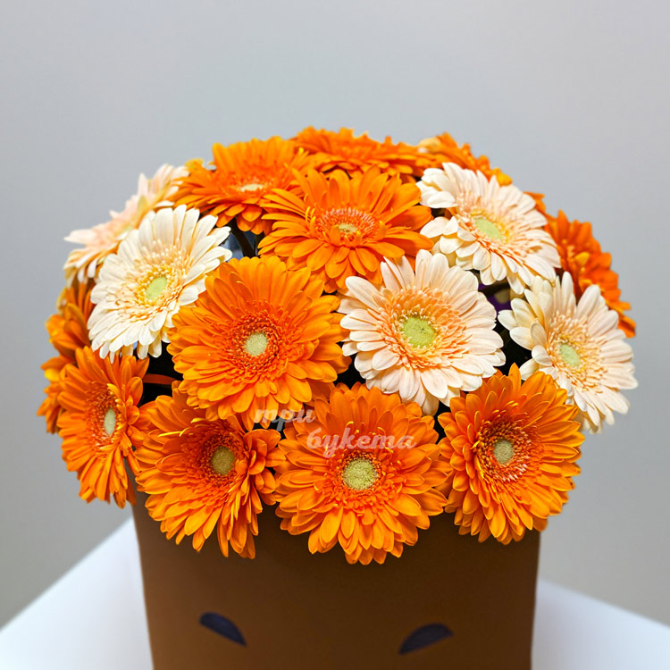Коробка желтых и оранжевых гербер