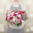 Корзина хризантем, гвоздик и роз