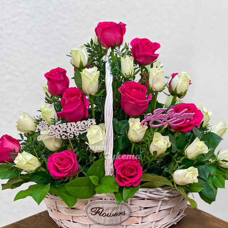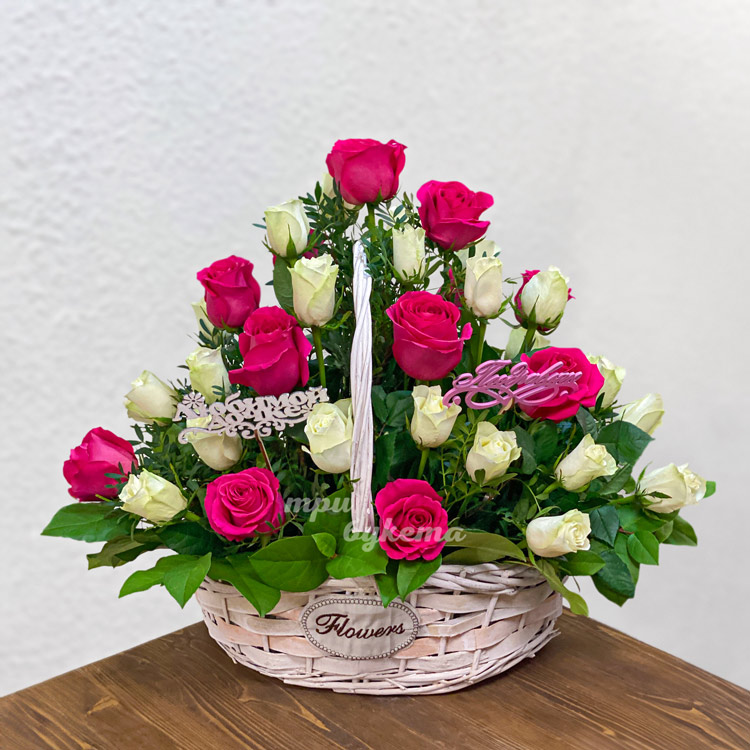 Корзина роз с зеленью для дочки