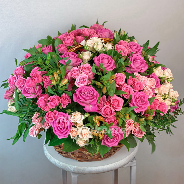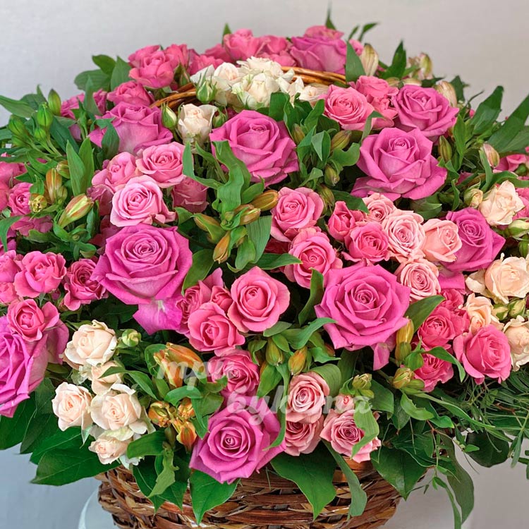 Корзина кустовых розовых роз