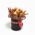 Корзина с розами и лимониумом