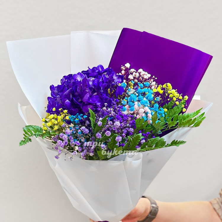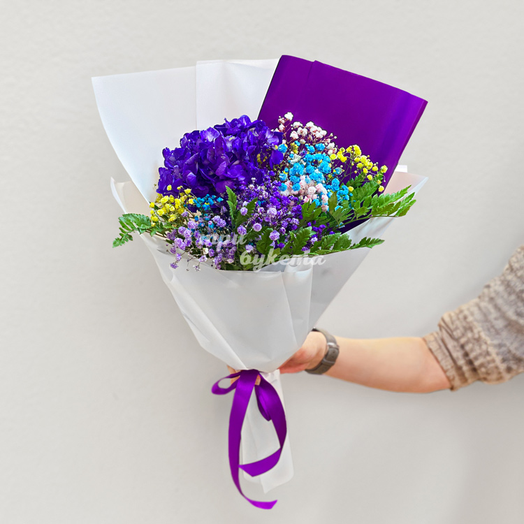 Мини-букет из гортензии с гипсофилой