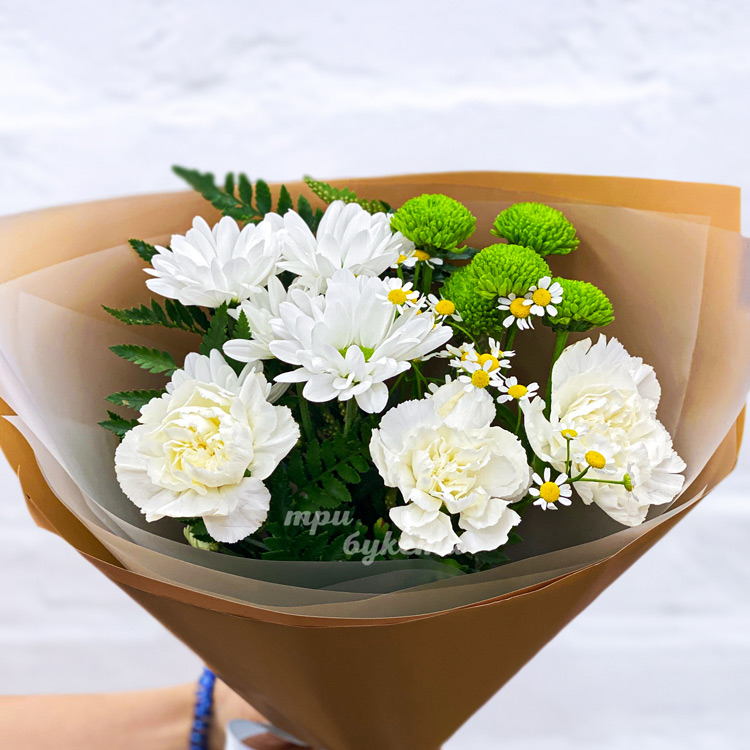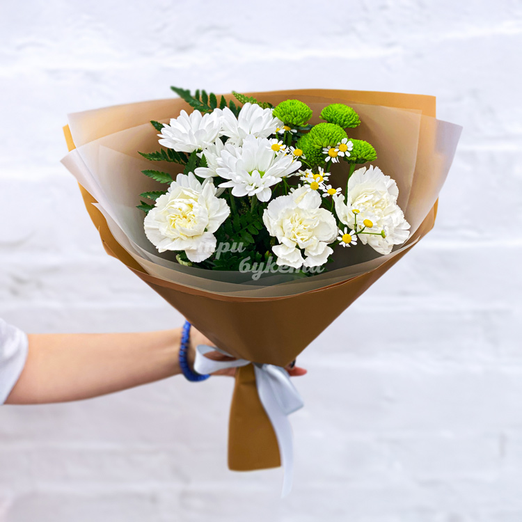 Мини-букет из хризантем, гвоздик и ромашек