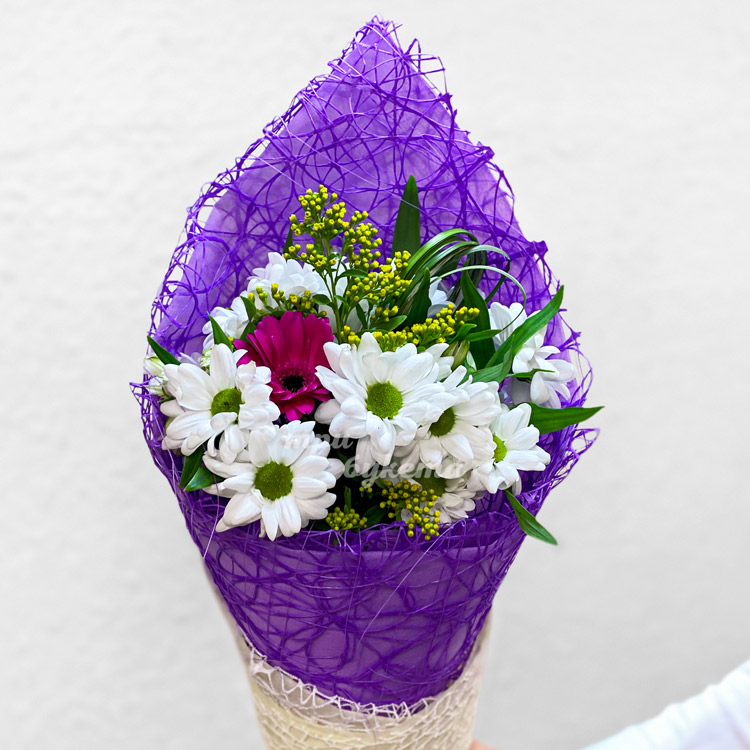 Мини-букет из хризантем и герберы