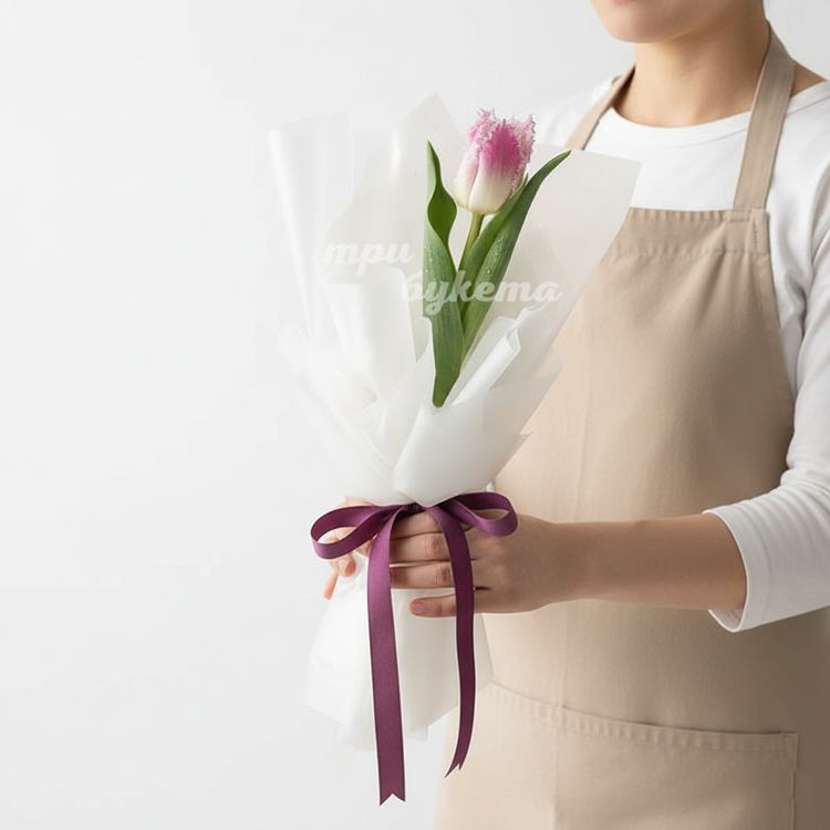 - Бело-розовый тюльпан, 1 шт.