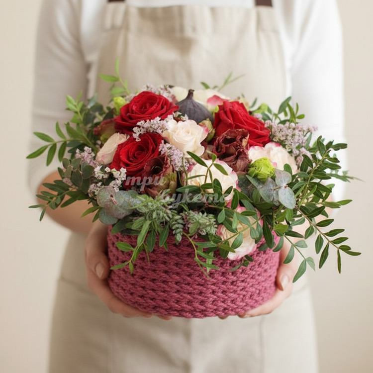 Мини-композиция из роз и инжира