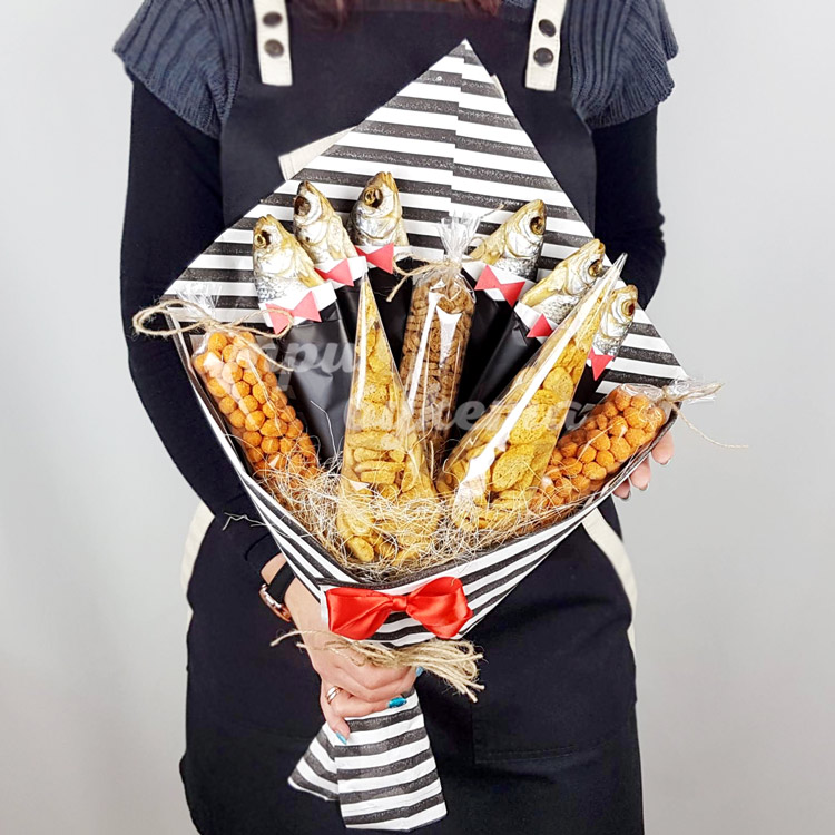 Мужской букет из рыбы и арахиса