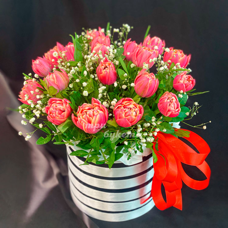 Пионовидные тюльпаны в коробке