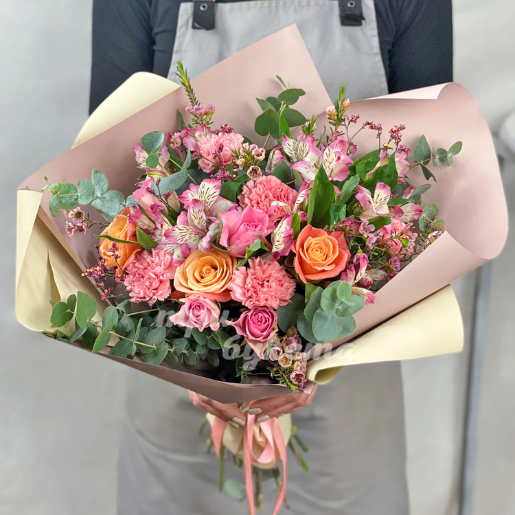Розовые гвоздики и альстромерии